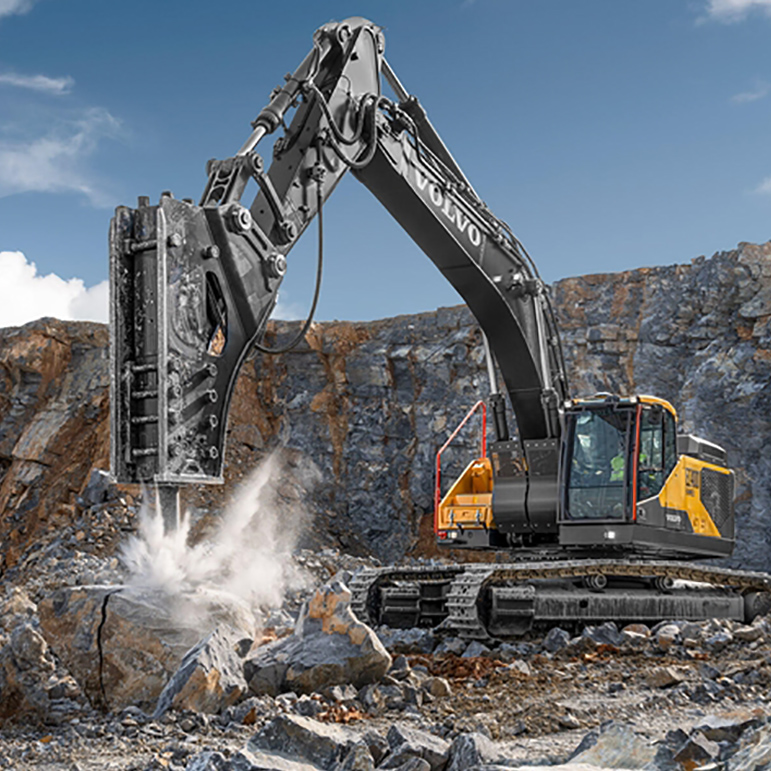 EC400破裂锤版专为破裂锤利用而设想,颠末强化加固,更大限制地进步了不变性和能源。除微弱的策念头能源、加大的主泵和超卓的冷却机能之外,还装备195 mm的钎杆,能够应答加倍卑劣的功课前提。